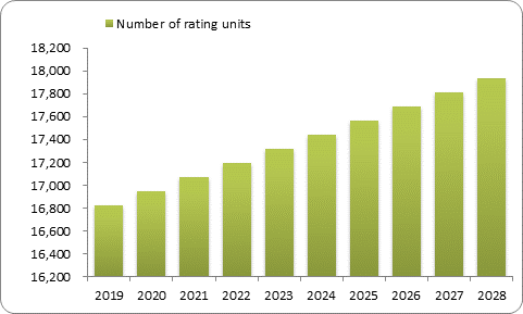 The following chart shows the Council's projected number of rating units for each of the ten years of the LTP.