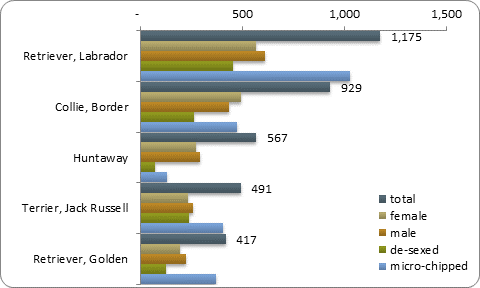 This profile shows a snapshot of the number of dog registrations, top five pure breeds, number of owners, infringements and other statistics recorded by this Council in the National Dogs Database as at 31 May.