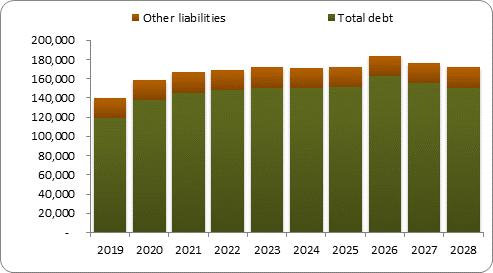 All figures in $000s, as at year ended 30 June 2019 - 2028.