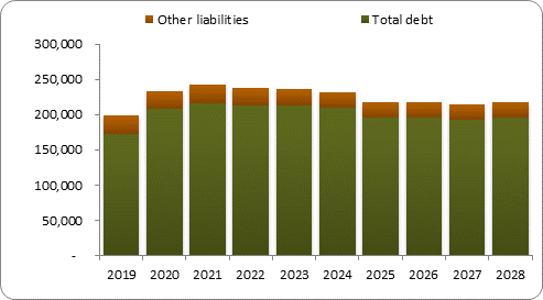 All figures in $000s, as at year ended 30 June 2019 - 2028.