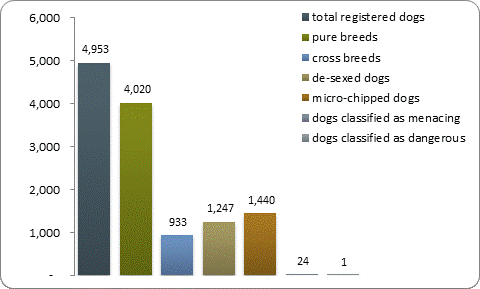 This profile shows a snapshot of the number of dog registrations, top five pure breeds, number of owners, infringements and other statistics recorded by this Council in the National Dog Database as at 31 May.