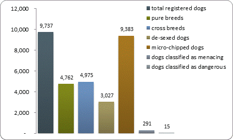 This profile shows a snapshot of the number of dog registrations, top five pure breeds, number of owners, infringements and other statistics recorded by this Council in the National Dog Database as at 31 May.