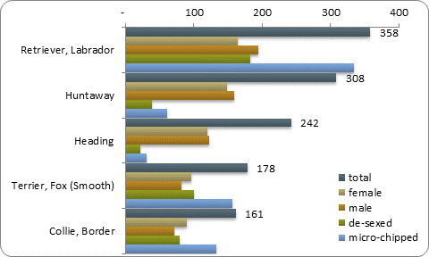 This profile shows a snapshot of the number of dog registrations, top five pure breeds, number of owners, infringements and other statistics recorded by this Council in the National Dogs Database as at 31 May.