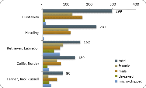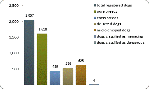 This profile shows a snapshot of the number of dog registrations, top five pure breeds, number of owners, infringements and other statistics recorded by this Council in the National Dogs Database as at 31 May.