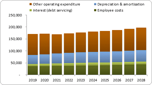 All figures in $000s, as at year ended 30 June 2019 - 2028.