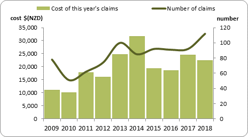 5. Claim costs are in NZ dollars ($), are only for payments made in the same year as the accident date, have not been adjusted for inflation and exclude GST.