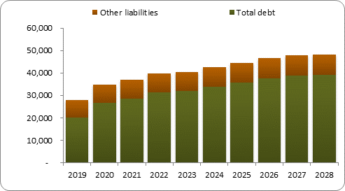 All figures in $000s, as at year ended 30 June 2019 - 2028.