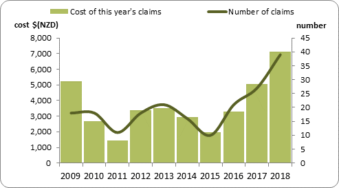 5. Claim costs are in NZ dollars ($), are only for payments made in the same year as the accident date, have not been adjusted for inflation and exclude GST.