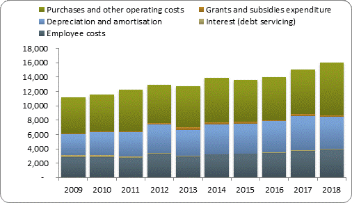 All figures in $000s, as at year ended 30 June 2009 - 2018.