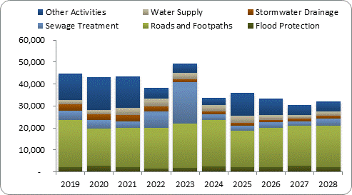 This profile shows the Council's forecast capital expenditure over a 10 year period, by type and by activity. This information has been collected by the Department of Internal Affairs from the Council's current Long-Term Plan (LTP).