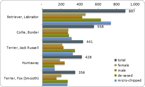 This profile shows a snapshot of the number of dog registrations, top five pure breeds, number of owners, infringements and other statistics recorded by this Council in the National Dogs Database as at 31 May.